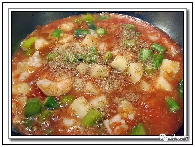 蓋上蓋子燒兩分鍾(我會用定時器:),蒸汽會把蝦蒸熟並保持滑嫩。開蓋加點鹽糖調好味道,我還喜歡加一勺墨西哥的那個salsa醬,味道更好。最後撒上現磨的胡椒粉出鍋: