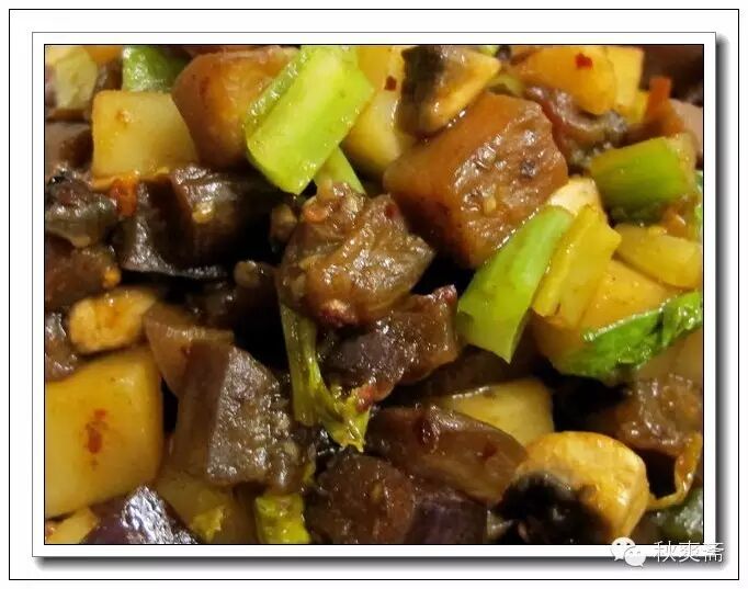 我喜歡吃辣,有時候多加蔬菜,做成麻辣口味的~~~順時針:蘑菇,熟土豆,芹菜,茄子丁:)