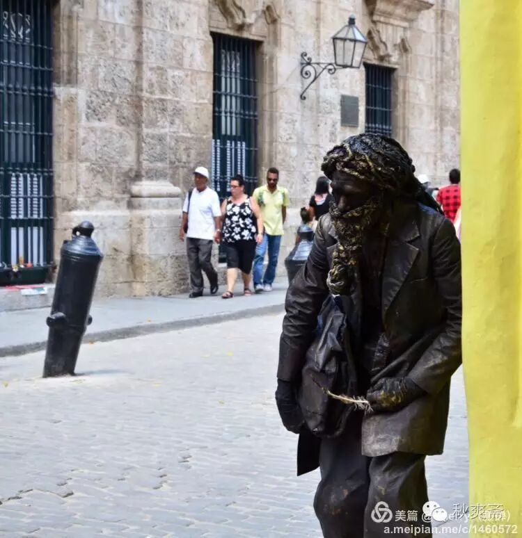 街頭藝人,高溫下像雕塑一樣一動不動,實在不易,遊客與他們合影需給小費。