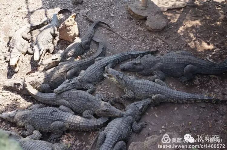 鱷魚園裏可以親近鱷魚,小鱷魚嘴巴是捆住的,膽大的朋友紛紛去拍照留念。