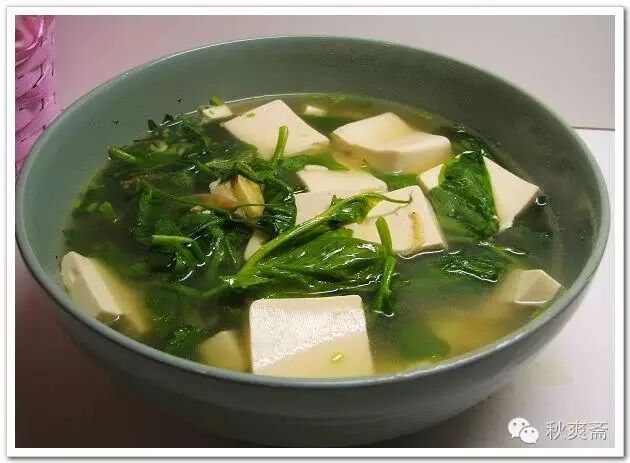 最後上一海碗豌豆苗蝦皮豆腐湯: