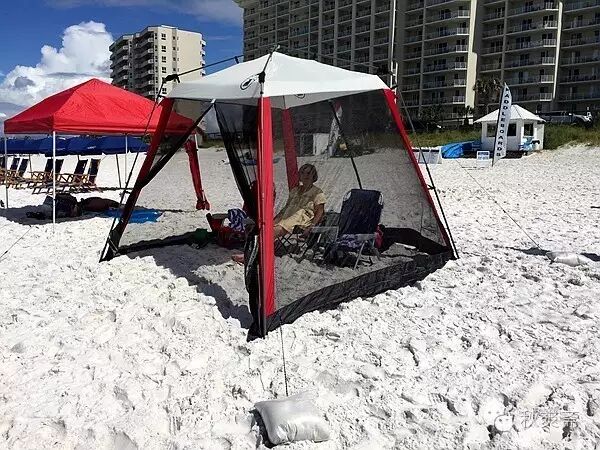 朋友家常去海邊,裝備齊全~~~三個老太婆很麻利的支起了帳篷: