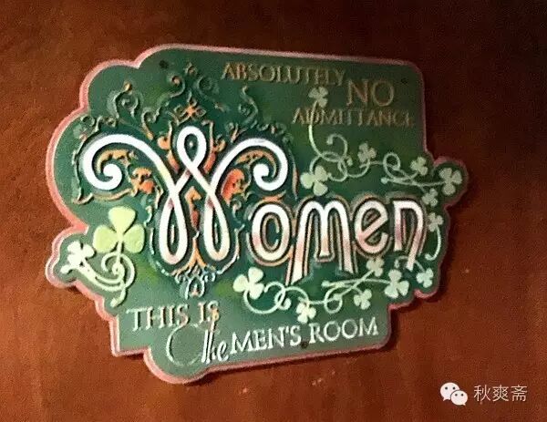 門口很多人等座位,我們排上號,先在廁所門口發現了一個好玩的牌子~~~花體字寫著‘女’,可是下麵一行小字卻寫著:‘這是男廁所’ :)