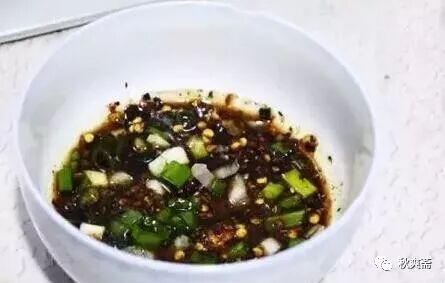 ▲糊椒蘸水(糊辣椒、鹽、醬油、蔥、熱湯)