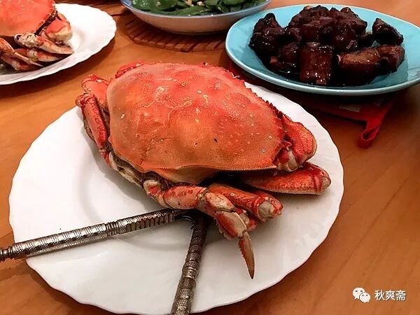老爺在Costco買的煮熟的大螃蟹,雖然冰凍過,因為煮的時候很新鮮,所以味道還行: