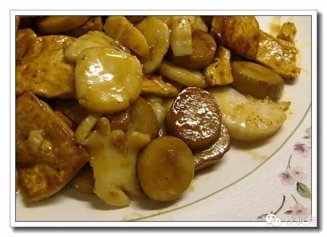 不能吃辣的朋友可以用普通菜油煎豆腐杏鮑菇和扇貝,然後加醬油糖紅燒一下豆腐杏鮑菇,汁快收幹時加入煎好的扇貝翻炒均勻就可以出鍋了~~~很大的一盤,請客時最先掃光: