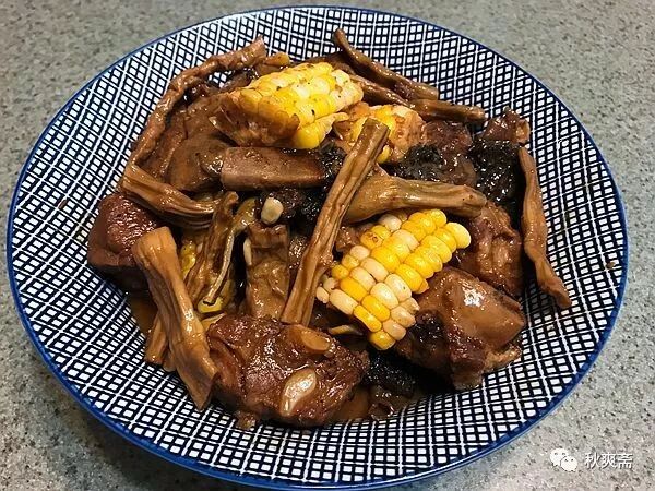 熱菜~~~提前煮好的筍幹排骨。也是空氣炸鍋和電高壓鍋合作的產品。收汁時加了一個嫩玉米,很好吃!