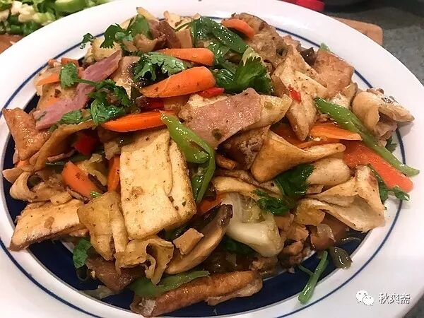 配點蔬菜,火腿肉等炒一盤~~~好吃:)