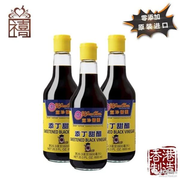 第一次也是因為家裏有一瓶這個添丁甜醋(上次沒拍圖,從網上借了一張),老爺嫌太甜一直放那兒沒用。以後再煮豬腳薑還得用它,然後再添一點別的醋(張師傅的比例是10:1):