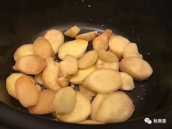 對了,最好不用鐵鍋哦~~~新買的砂鍋又用上啦~~~中火慢慢煸幹水汽:)