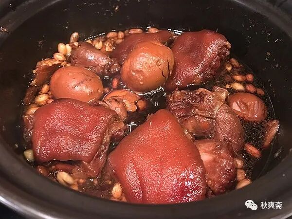 煮了那麽久,醋味幾乎都揮發得差不多了,再把擦幹的豬腳放入,大火燒開,轉小火燉到軟爛入味(大約30分鍾左右,自己掌握吧):