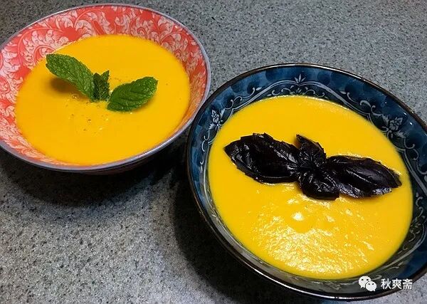 第二次做時間比較從容,便用點黃油煎香了洋蔥,跟煮好的南瓜鹹蛋一起打: