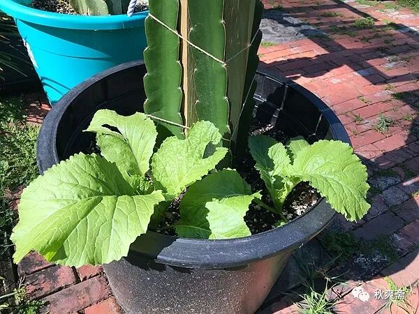 看見老爺放在後門口的火龍果盆裏有些空地,忍不住拔了幾棵小苗移栽進去。大概是離菜地遠,還沒被蟲蟲們發現:)