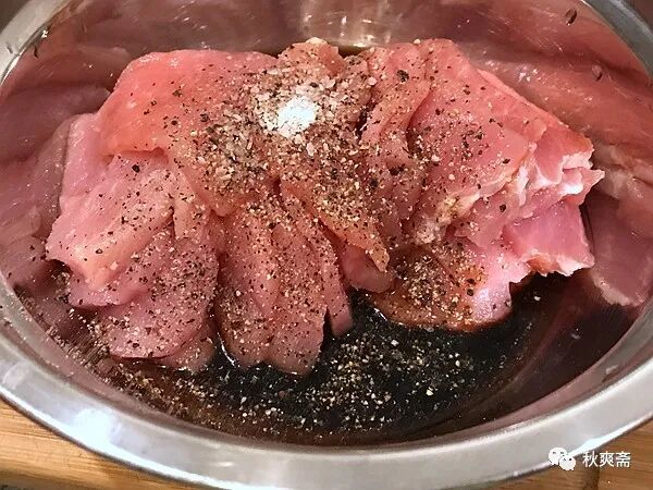美國超市的裏脊肉經常有促銷,一買一大條。以前分享過《椒鹽裏脊》和《沒有牙簽的牙簽肉》,也提到比較整齊的部位切成條凍上,用來炒肉片。