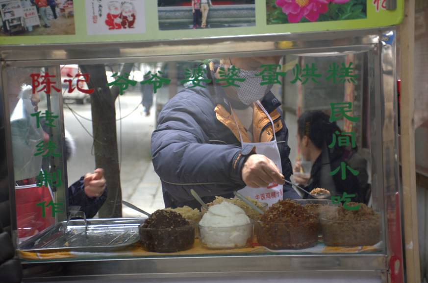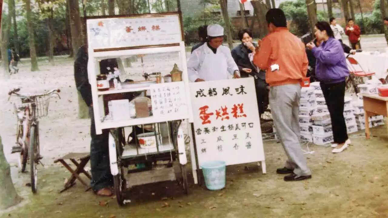 1986年,陳大爺開始正式賣蛋烘糕。最開始是流動擺攤,後來,他在玉林四巷占了一個好攤位。起初,陳大爺的蛋烘糕也口味平平,後來,他遇到了成都蛋烘糕的創始人、人民公園門口擺攤的老曾大爺,得到了老曾大爺的指點後,陳大爺的蛋烘糕越做越順,還把白糖、豆沙、花生,拓展出了新的招牌口味—— 怪味香辣蛋烘糕。
