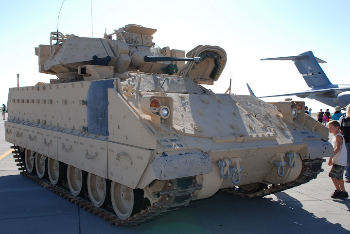 另外,那個所謂小飛機駕駛艙是C130的,所謂大飛機是C17。很多上去的,看不到飛機頭啥樣,但應該是KC135。那個車是M2,直升機是AH64。