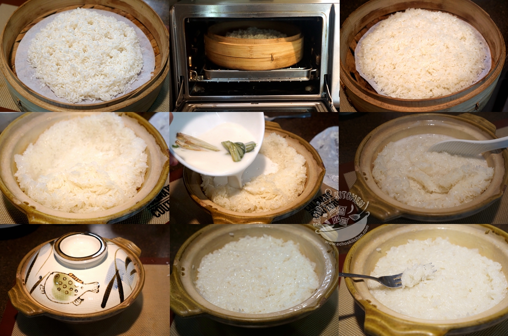注: 椰奶拌入糯米的時候糯米和椰奶必須是熱的,這樣做出來的糯米飯才不會泛油而變得油膩。