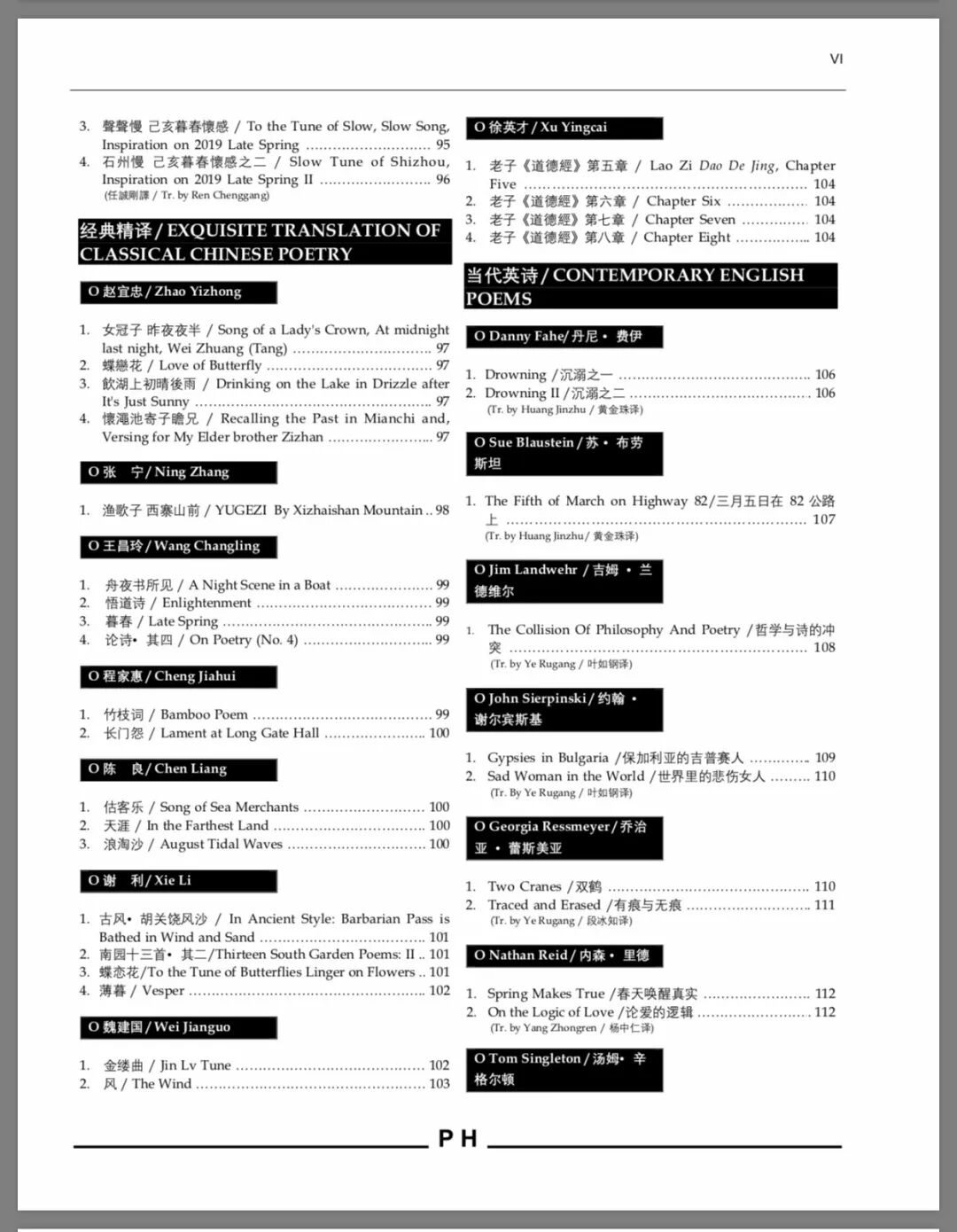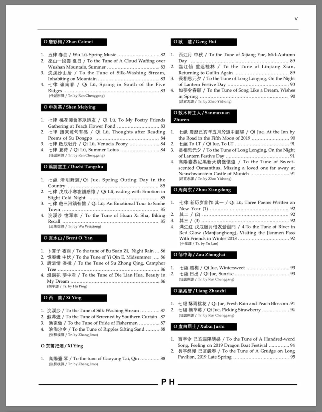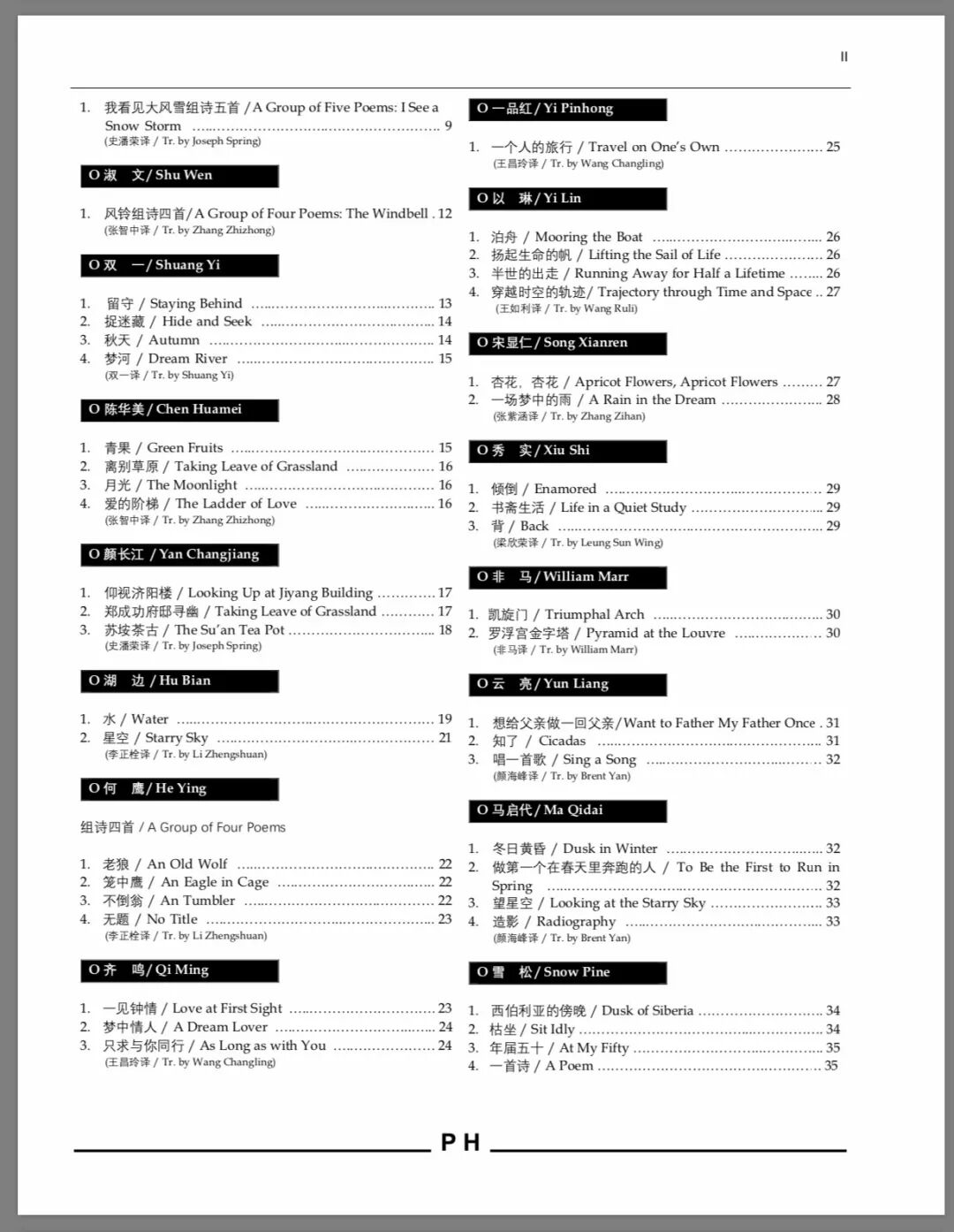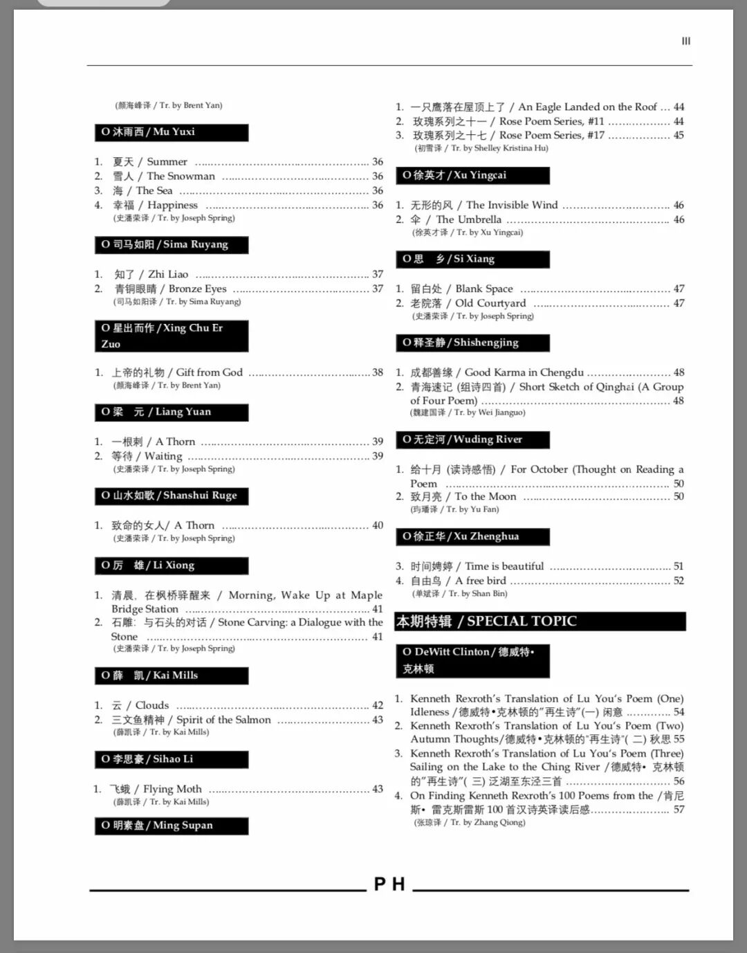 Shi Panrong (aka Joseph Spring), English teacher of Xijing University, member of Chinese Classics Bilinguals Association, member of Shanxi Translators Association, and editor for two periodicals. His publications include a poetry book, Flowing Lyricism (2004).