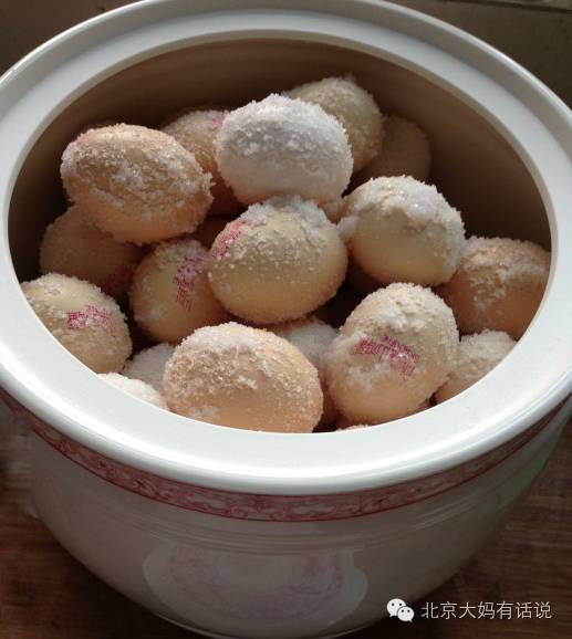6.雞蛋摞放到罐子裏,有縫隙不要怕,用食鹽或者粗鹽填滿即可