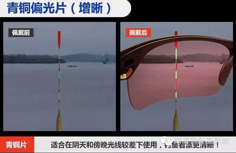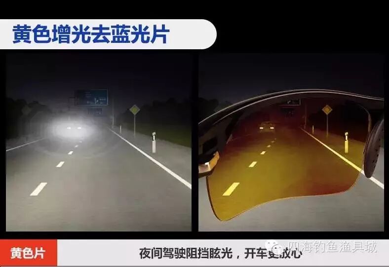3、夜釣建議使用黃色增光片,可增晰看漂,同時如果使用藍光釣魚燈的時候,有去藍光效果,有效保護眼鏡。