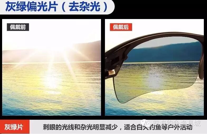 2、中午陽光強烈時,建議選擇灰綠偏光片,可吸收紫外線,極大消除消減強光,使光線柔和,適於長時間用眼,有效解除疲勞。