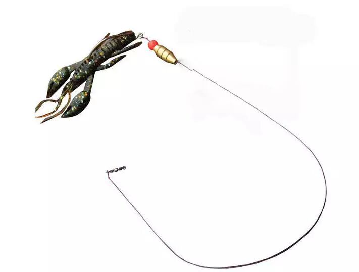 範圍內定鉛的德州,同樣也是用於草區,目的大致和定鉛德州相同。但是,有些場地的魚的警惕性非常高,或者水具一定深度,魚兒躲藏在離水麵較近的位置,高速下墜的釣組往往會錯過魚的最佳捕食位置,若不固定子彈鉛,你的釣組很難鑽進草洞,固定的話,下沉速度又太快。這時候就得采取折中的辦法,把太空豆移開,在不影響拋投的情況下,給予子彈鉛一定的活動空間,就能有效減緩釣組剛剛入水時就快速下降的弊端。