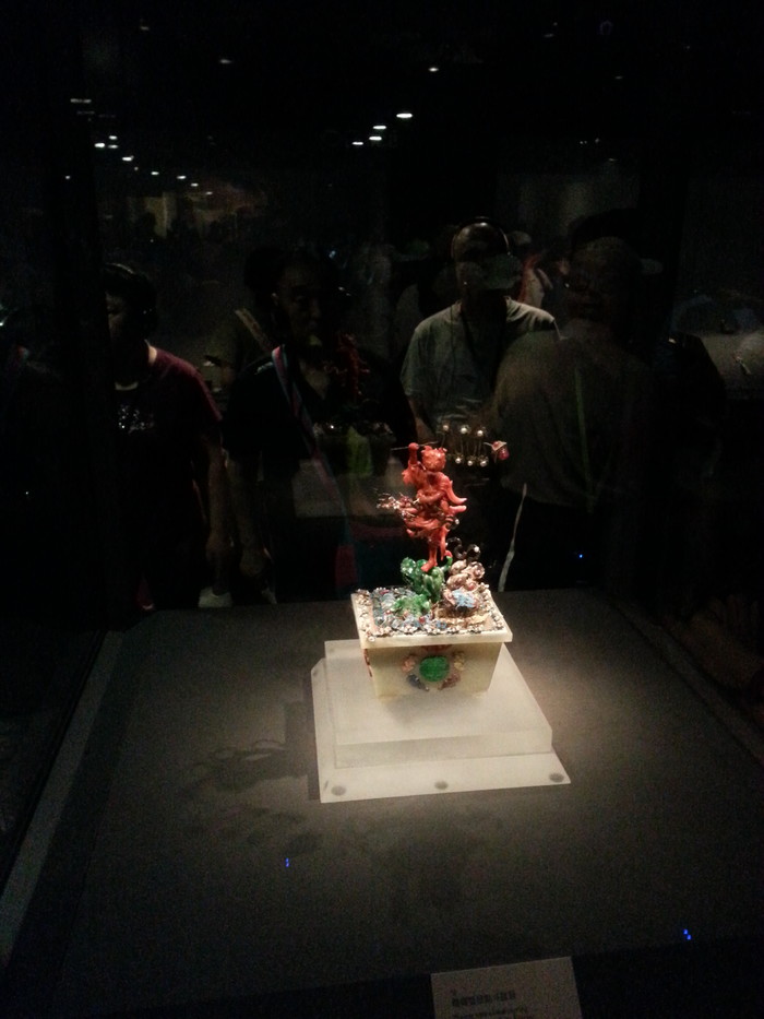 3.故宮珍品輪流展出和巡展,兩大鎮館之寶翡翠白菜和肉型形石就沒有看到,但有幸看到出展的清院版清明上河圖。這是台灣收藏的幾部贗版之一,怎麽看都對不上見過的清明上河圖,真品在北京故宮但近幾十年好像從來沒有展出過,畫麵很暗可能是避光保護。