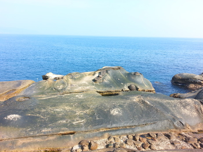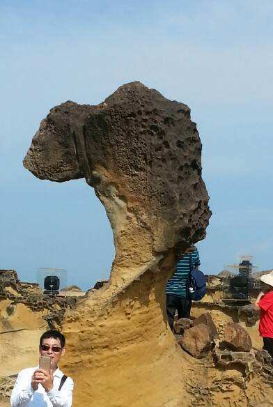 台灣野柳的石頭據導遊說有兩萬四千年的進化史,如今風化嚴重,當家的公主頭脖子在變細有一天會人頭落地,又有遊客的隨意蹬踏使獅子頭斷掉, 麵包火腿石殘缺致憾。