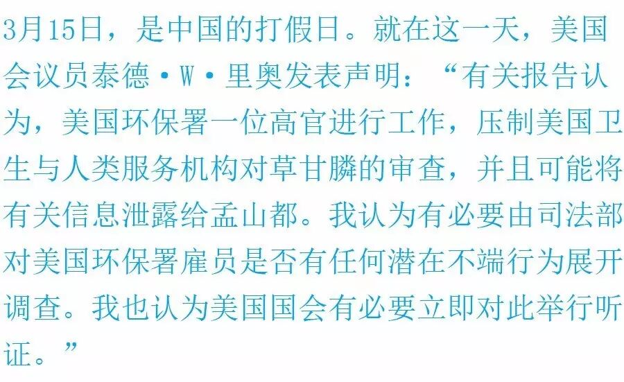 就是說,加州法官告訴人們:轉基因及伴侶草甘膦“沒有一例出現問題”,是建立在孟山都拉攏腐蝕美國環保署官員共同隱瞞危害事實的基礎上的,是建立在謊言的基礎上的。“轉基因隱藏著最大的跨國腐敗”,這個殘酷的現實再次露出了冰山一角。