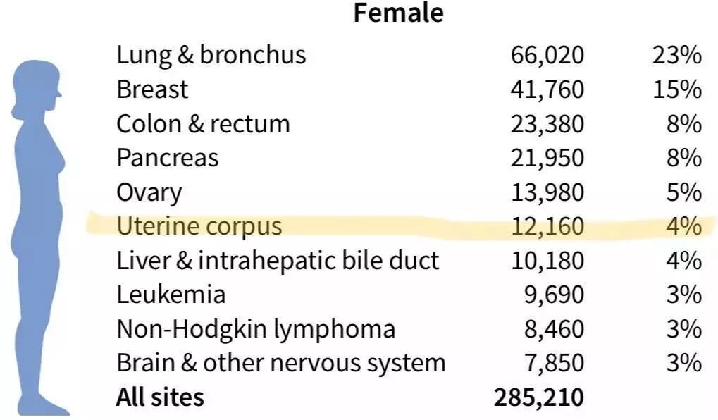 在女性癌症致死率排名榜, 子宮內膜癌名列第六