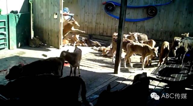 而屠夫們對待小牛就像對待自己的仇人一般,用盡力氣把它們活生生地扔進屠宰車內
