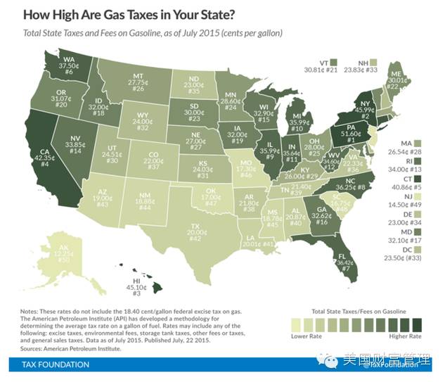 Tax Foundation 是一家創始於1937年的美國獨立稅法調查研究機構。每年他都會公布美國各州的稅率地圖,幫助大家了解自己所在州和全美國其他州相比的稅率水平。下麵最新一期的稅率地圖。