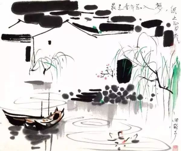 這一切落入畫家的眼中,便成了足以入畫的視覺之美,一彎小船承載了畫家太多的童年記憶。可以說,吳冠中的江南夢,便是從這一條小小的船牽縈開去的。