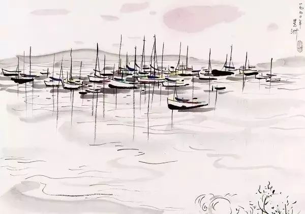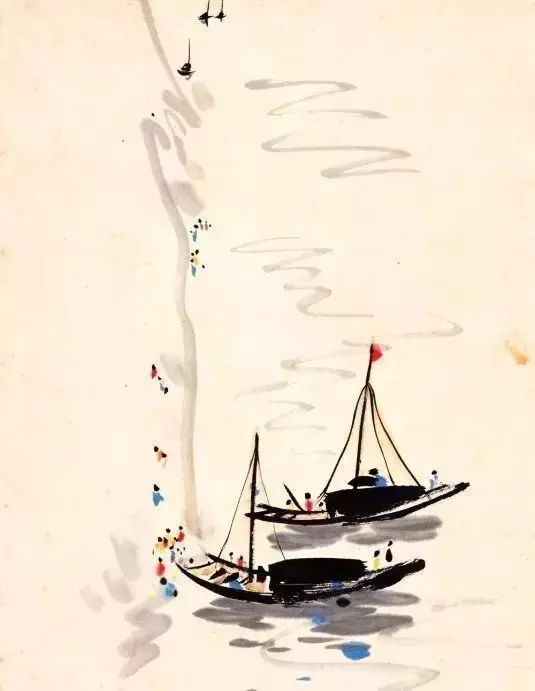 “我永遠記得姑爹家那隻小漁船,它永遠離不開姑爹,它也像姑爹對我一樣的親切……小小漁船永遠地在我腦海裏留下了難忘的形象,親切的形象,我特別喜愛魯迅故鄉的烏篷船,我的繪畫作品中經常出現水鄉小船,正淵源於姑爹家的漁船吧!”
