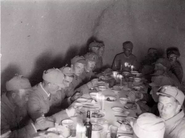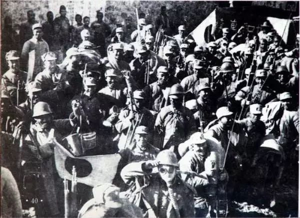 圖為平型關大捷後,八路軍115師戰士繳獲豐富,他們開玩笑的帶著日軍的鋼盔、防毒麵具、膏藥旗,個個喜笑顏開。