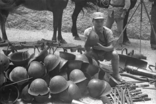 補充武器,主要靠繳獲。圖為一個八路軍戰士在檢查戰利品。