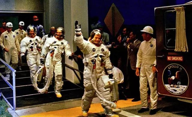 1969年,尼爾·阿姆斯特朗等三名宇航員乘坐阿波羅飛船登月歸來