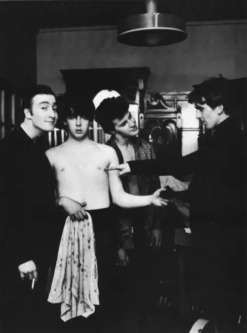甲殼蟲樂隊圍著照相機,時間是1961年