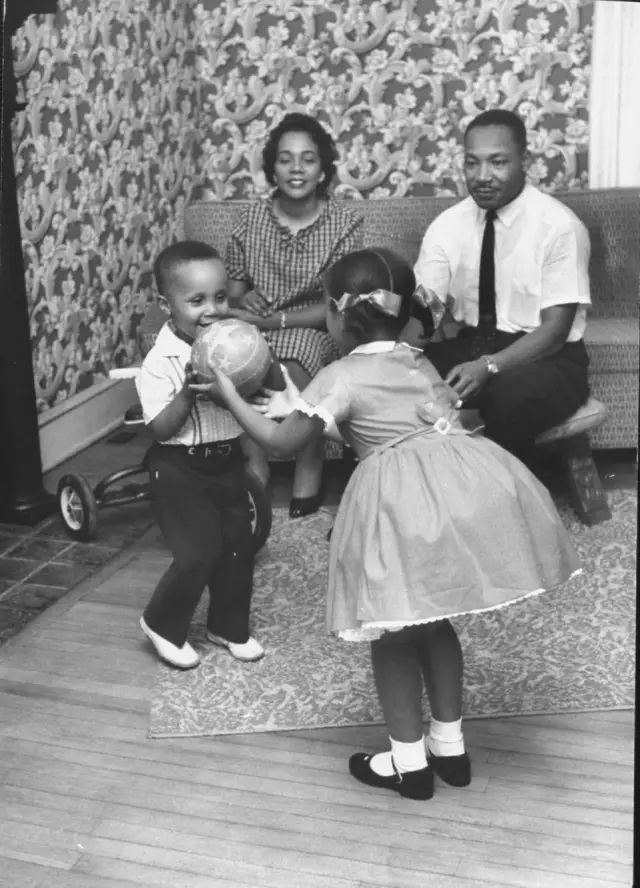 1960年,馬丁·路德·金和妻子看著孩子們玩球