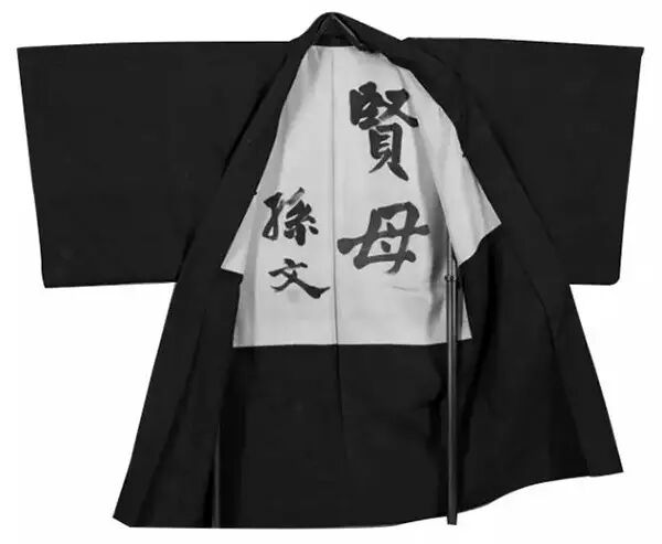 日本友人梅屋莊吉捐助5.7萬日元,孫中山為表達謝意,特在梅屋莊吉夫人十分喜愛的綢短褂內襯上“賢母”二字。