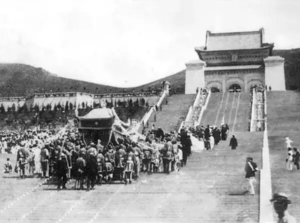 1912年2月15日,孫中山率文武官員拜謁明孝陵,昭告滿人統治的結束。