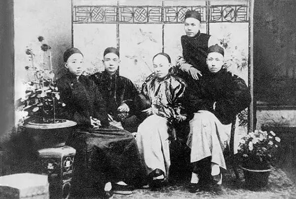 1892年,孫中山在香港西醫書院學習時與友人合影。左起楊鶴齡、孫中山、陳少白、關心焉、尢列。