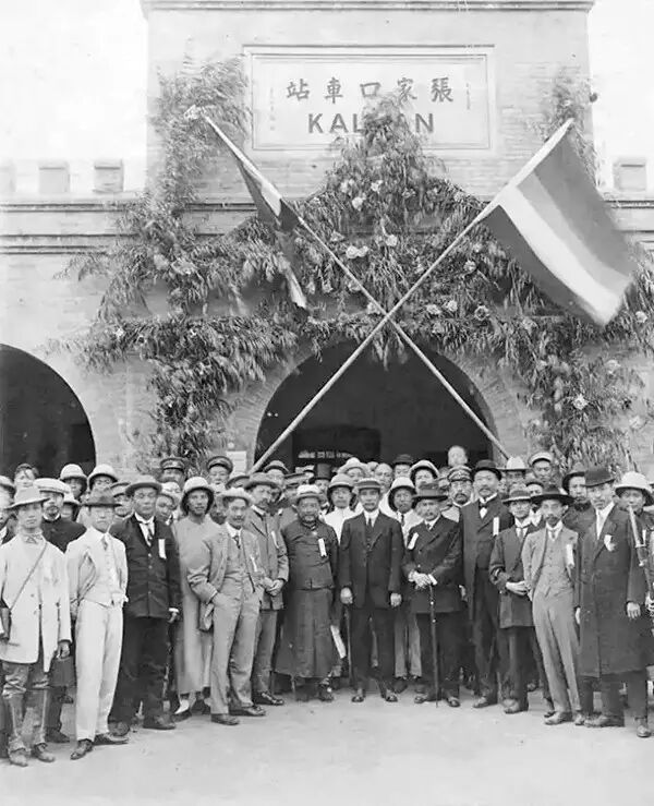 1912年9月7日,孫中山視察京張鐵路時與迎接人員在張家口車站合影。
