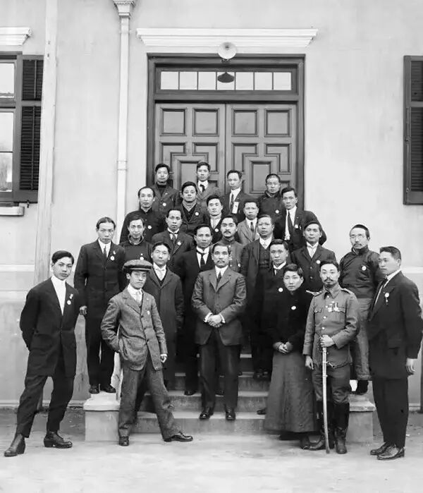1912 年1 月,孫中山在南京就任中華民國臨時大總統,與總統府職員合影。