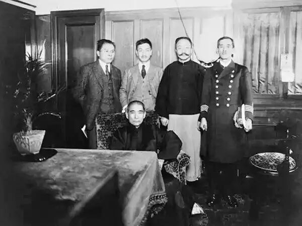 1924年11月22日,孫中山攜宋慶齡等乘船離滬,取道日本轉赴北京,孫中山由滬赴日途中在船上留影。