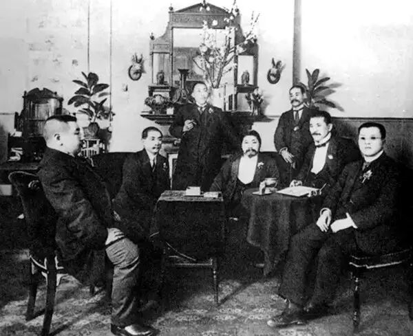 1916年4月9日,孫中山、宋慶齡等在日本東京集會討袁時的合影。