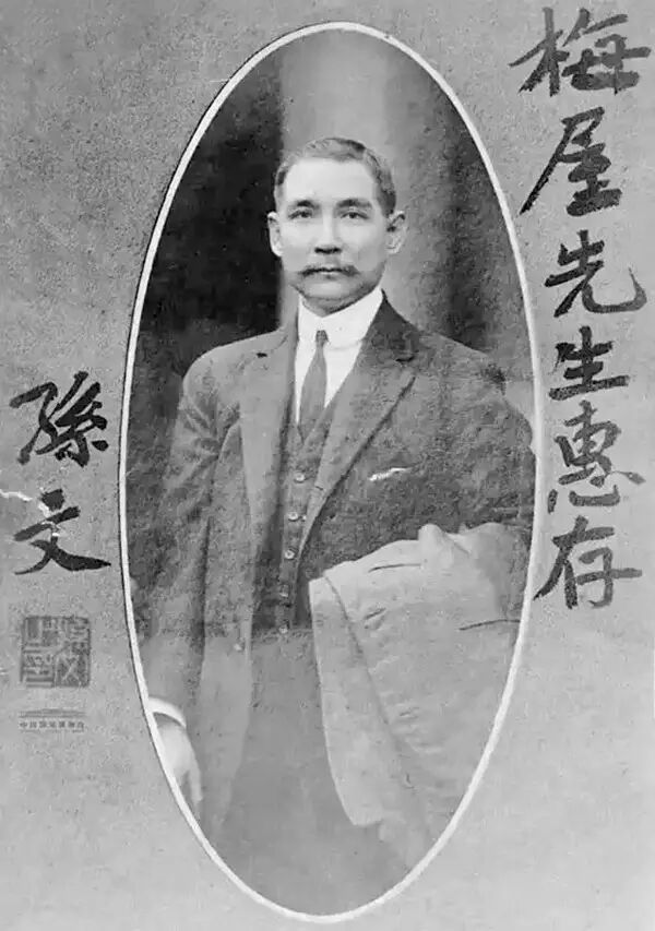 孫中山對此照很是滿意,特意將合影中的自身象單獨裁出洗印,以贈友人。該照是他贈與日本友人梅屋莊吉的,上麵有其簽名和印章。