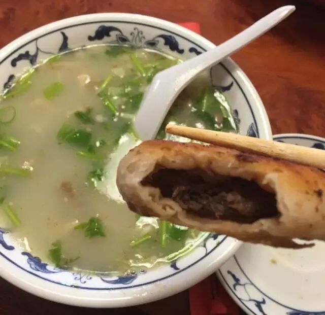 火勺加羊湯,絕配!!鄒記家的火勺外皮烤的很酥,內餡的牛肉很嫩,外酥內嫩配合的特別好。據店裏的廚師說,正常的火勺是很小的,店裏為了滿足紐約當地的需求,加大了份量。另外,他們家的羊湯鮮而不膩,入口鮮香至極,羊雜好吃味道渾厚。冬天來盤火勺再喝上碗羊湯實在是驅寒滋補的上好飲食。
