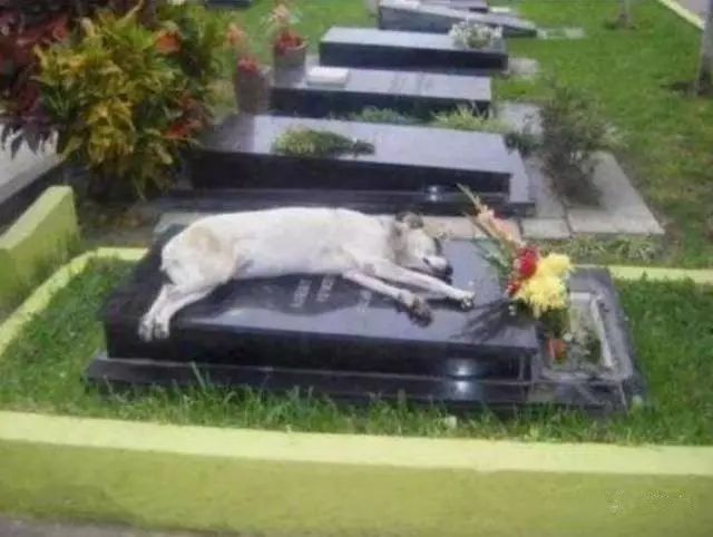 狗狗在主人2006年喪禮時失蹤,後來家人在掃墓時發現它睡在墓碑上。管理人員說,六年來,每天下午6點,它都會來墓碑休息。