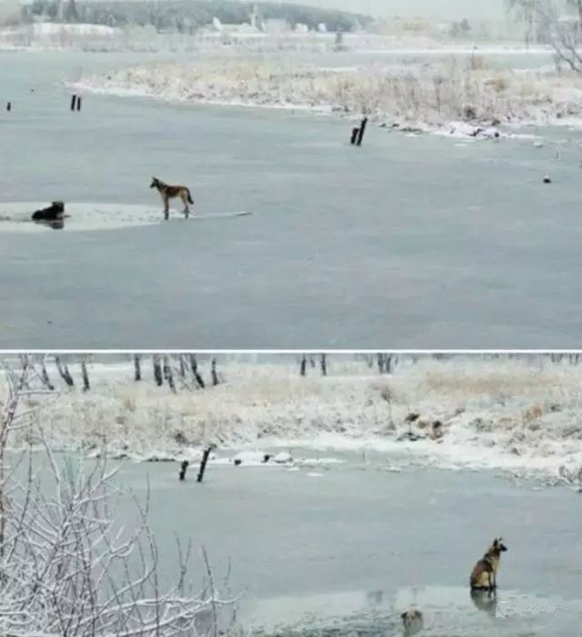 2011年的冬天,兩隻狗狗在冰封的河麵上玩耍,突然一隻狗狗不小心落入了河裏。另一隻狗狗無力救同伴,於是就守在旁邊狂吠,直到有人救出自己的同伴……